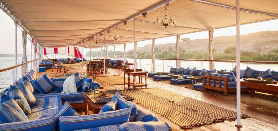While Dahabiyas maintain their classic design, their interiors bring a luxurious edge to traditional Nile travel. Guests can expect beautifully furnished cabins, polished woodwork, spacious sun decks, and attentive service that focuses on every detail. Many Dahabiyas feature air-conditioned rooms, stylish dining spaces, and private lounges where travelers can relax while watching the riverbank unfold at a leisurely pace.