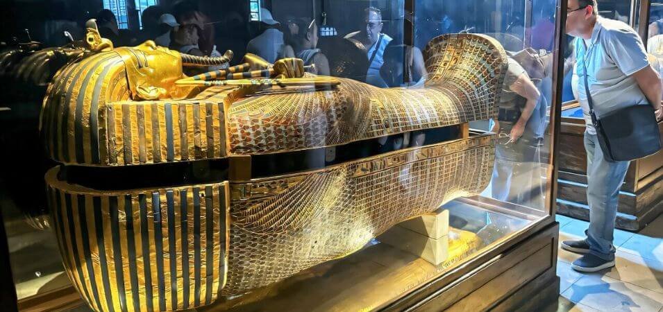 When Carter first peered into the tomb through a small opening, Lord Carnarvon asked if he could see anything. Carter’s answer would become legendary: “Yes, wonderful things.” The flickering light revealed golden statues, furniture, jewelry, and ritual items untouched by ancient thieves. Unlike many royal tombs that were plundered in antiquity, the Tutankhamun Tomb remained almost entirely intact, preserving an astonishing collection of over 5,000 artifacts.